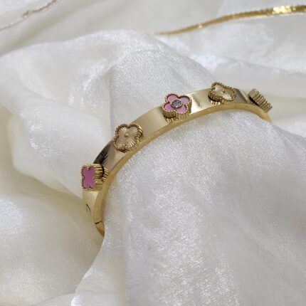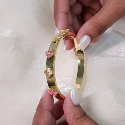 Pink Clover Charm Bangle