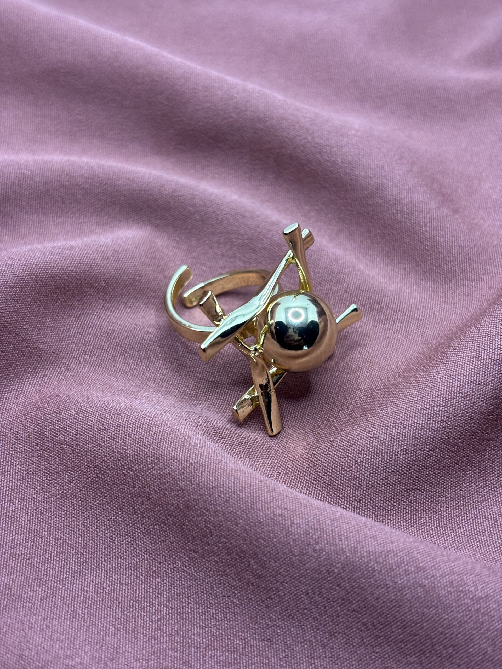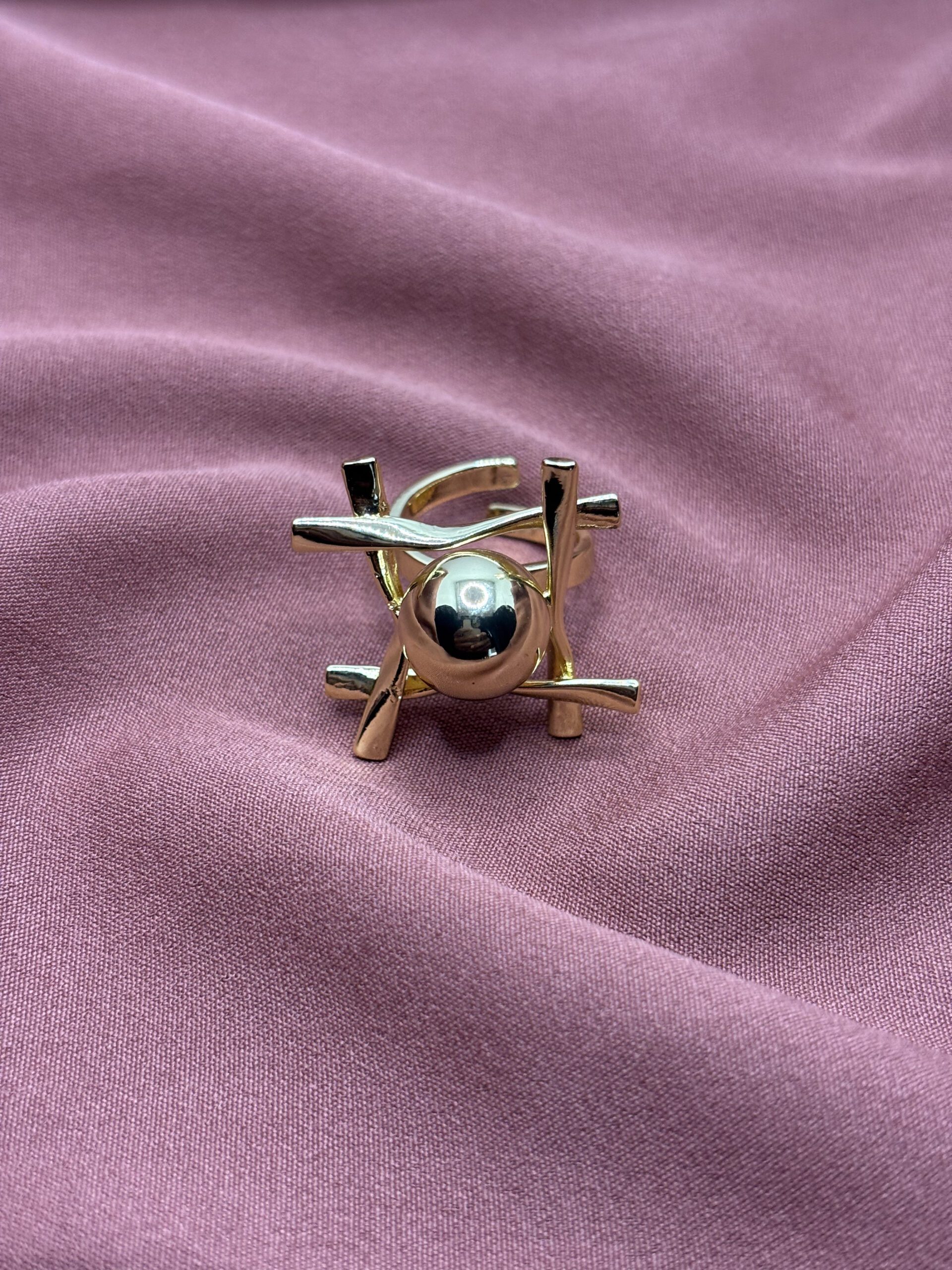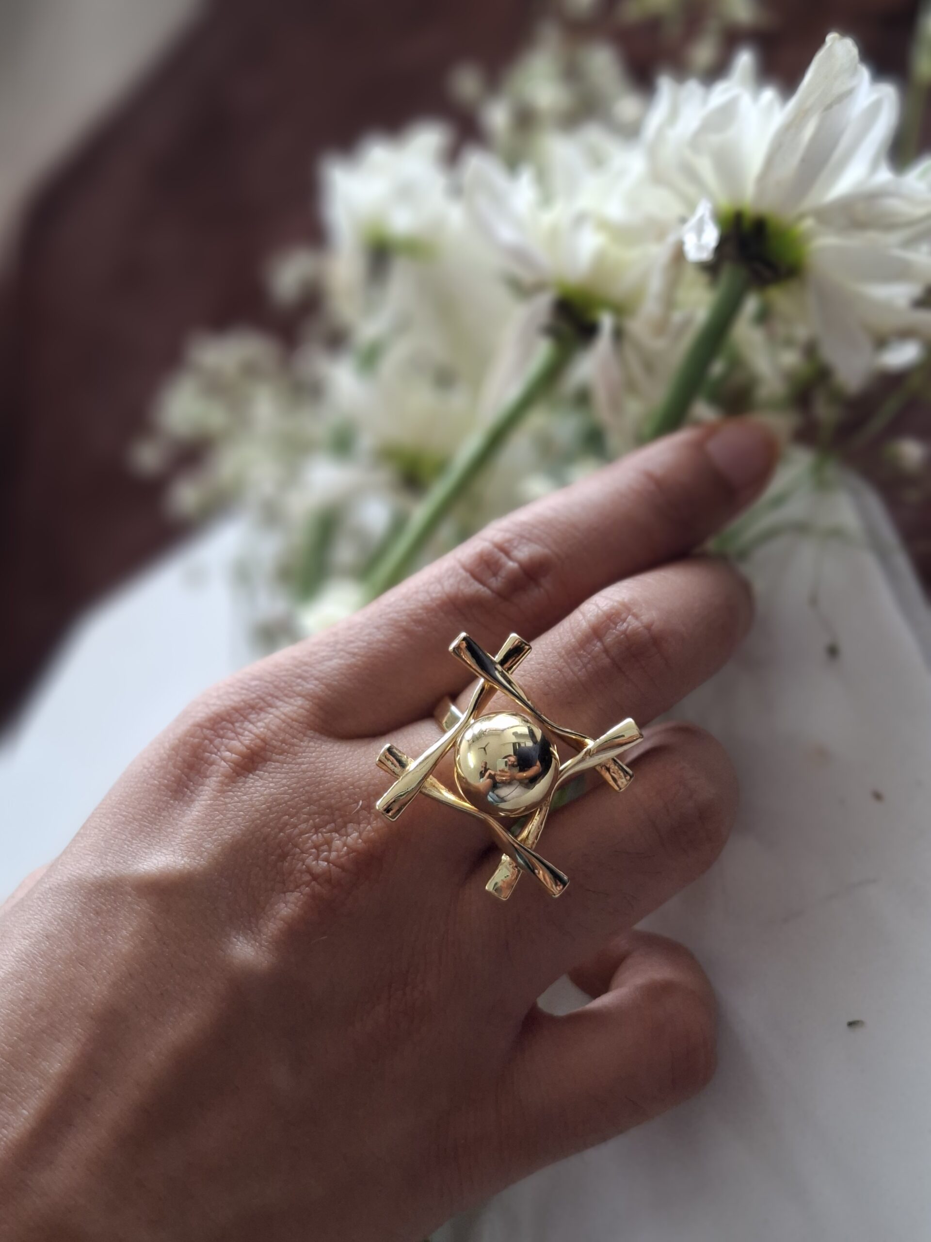 A bold cross-like structure ring crafted from stainless steel with anti-tarnish coating. Symbolic and stylish with a confident edge.