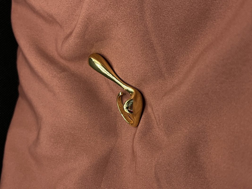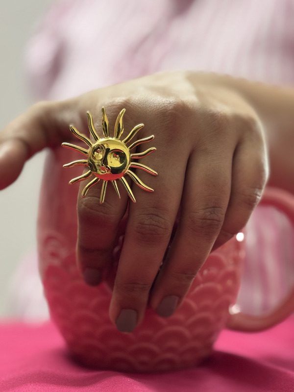 A single, four-petal clover charm with a bold hot pink enamel inlay, framed by a delicate gold-beaded border. This design is vibrant, fun, and makes a strong style statement. |