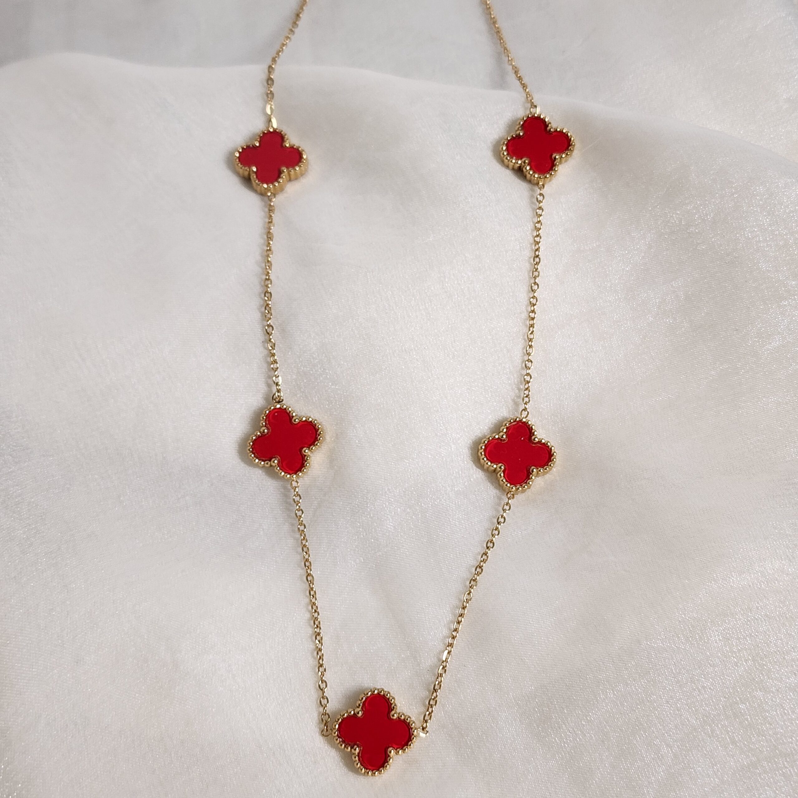 Tags: #antitarnish, #BoldNecklace, #EveningLook, #LuxuryAccessories, #NecklaceGoals, #RedCloverNecklace, #shiniyal, #StainlessSteelJewellery, #StatementJewellery, goldplated